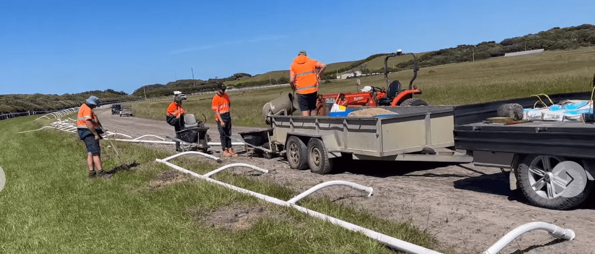 HORSE racing fans have thanked TasRacing for sending over four of their maintenance crew for a couple of days to help King Island Racing Club Inc volunteers get some of the race ready bigger jobs done.
